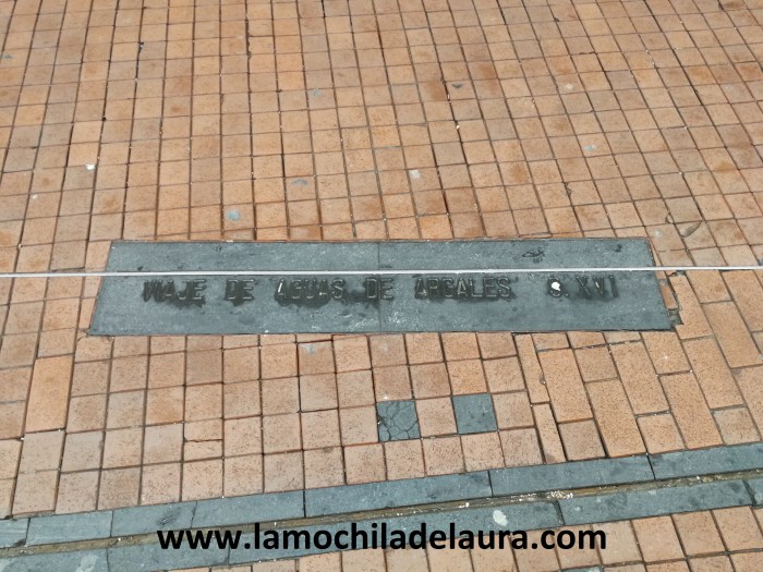 También podemos ver en la calle Teresa Gil, a la altura de la Iglesia de San Felipe Neri, unas marcas en el pavimento y una inscripción indicando por dónde discurría el viaje de aguas de Argales.